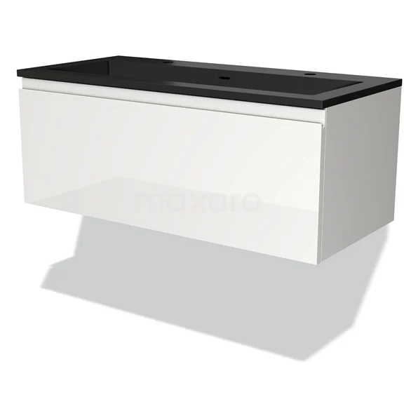 Modulo Bathroom furniture with sink | 100 cm High-gloss white Handle-less front Quartz 1 drawer