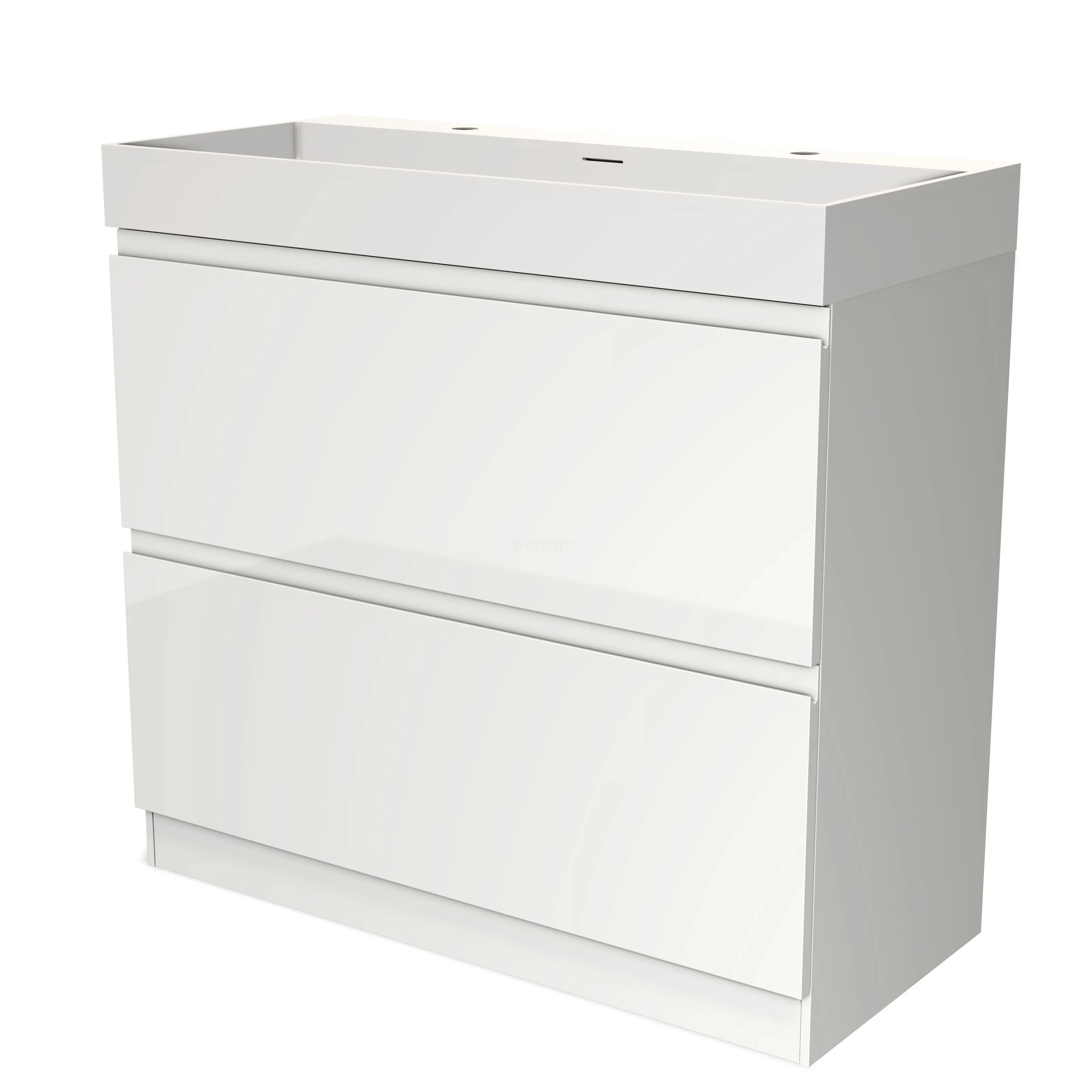 Modulo Bathroom furniture with sink | 100 cm High-gloss white Handle-less front Solid surface 2 high drawers standing drawers under each other