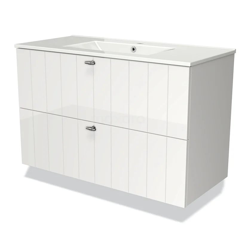 Modulo Bathroom furniture with sink | 100 cm High-gloss white Slat front Ceramic 2 Stacked drawers