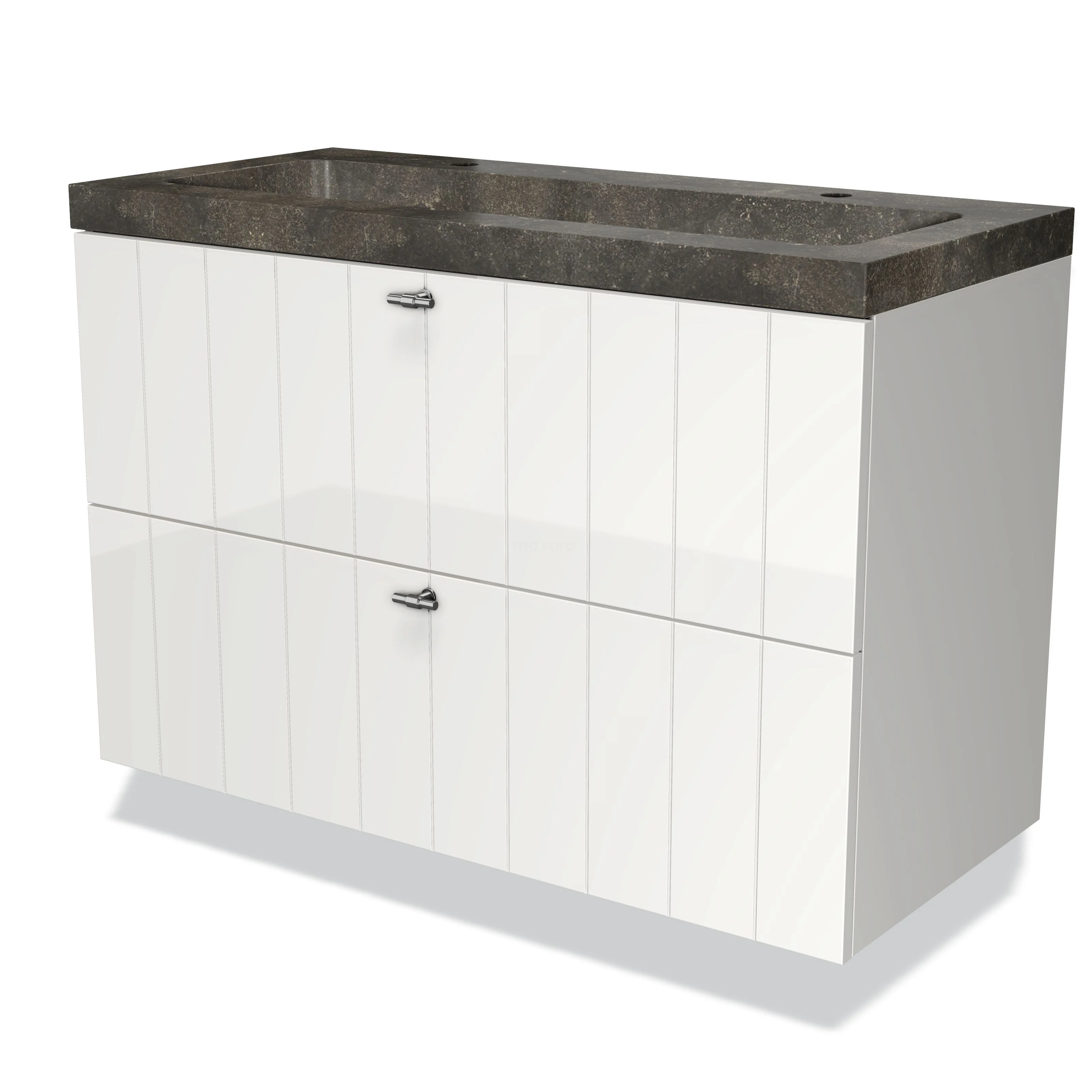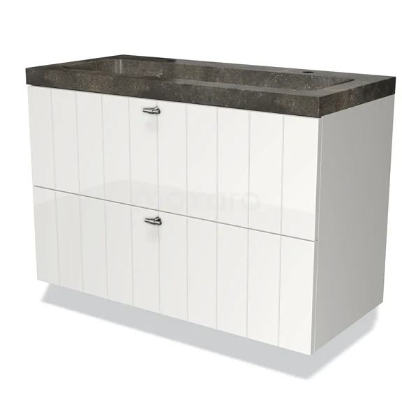 Modulo Bathroom furniture with sink | 100 cm High-gloss white Slat front Natural stone 2 Stacked drawers