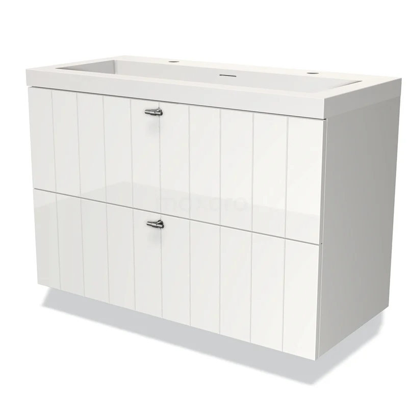 Modulo Bathroom furniture with sink | 100 cm High-gloss white Slat front Solid surface 2 Stacked drawers