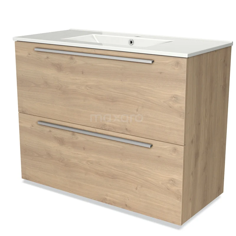 Modulo Bathroom furniture with sink | 100 cm Light brown oak Flat front Ceramic 2 stacked drawers under each other