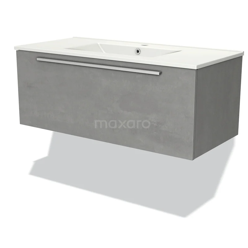 Modulo Bathroom furniture with sink | 100 cm Light grey concrete Flat front Ceramic 1 drawer