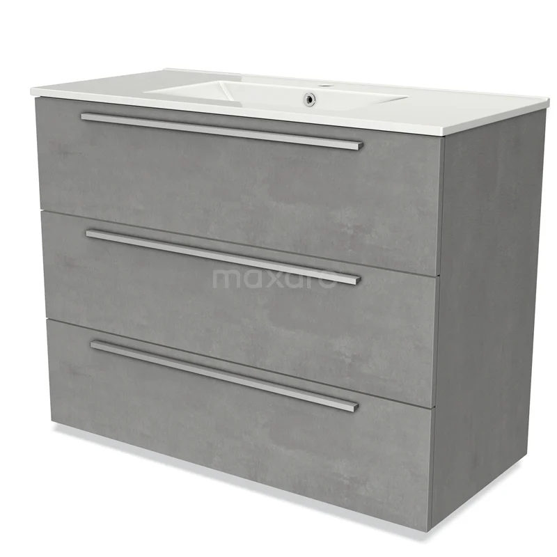 Modulo Bathroom furniture with sink | 100 cm Light grey concrete Flat front Ceramic 3 drawers