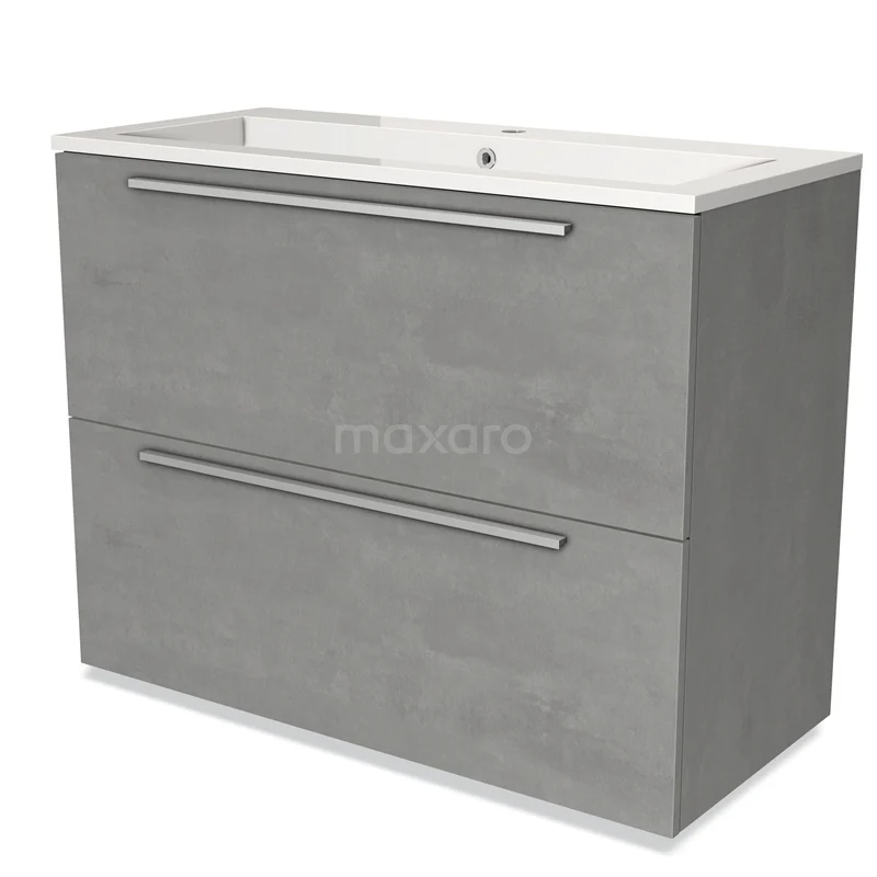 Modulo Bathroom furniture with sink | 100 cm Light grey concrete Flat front Mineral marble 2 stacked drawers under each other