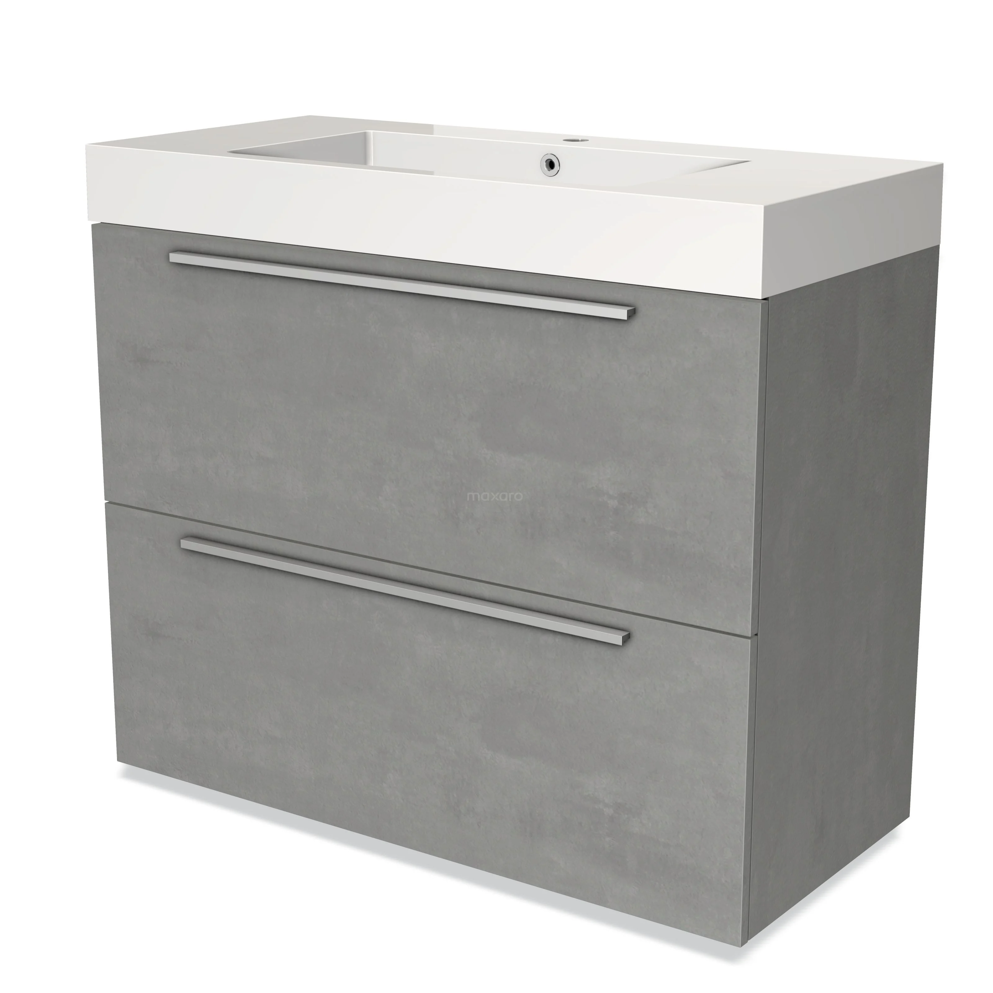 Modulo Bathroom furniture with sink | 100 cm Light grey concrete Flat front Mineral marble 2 stacked drawers under each other