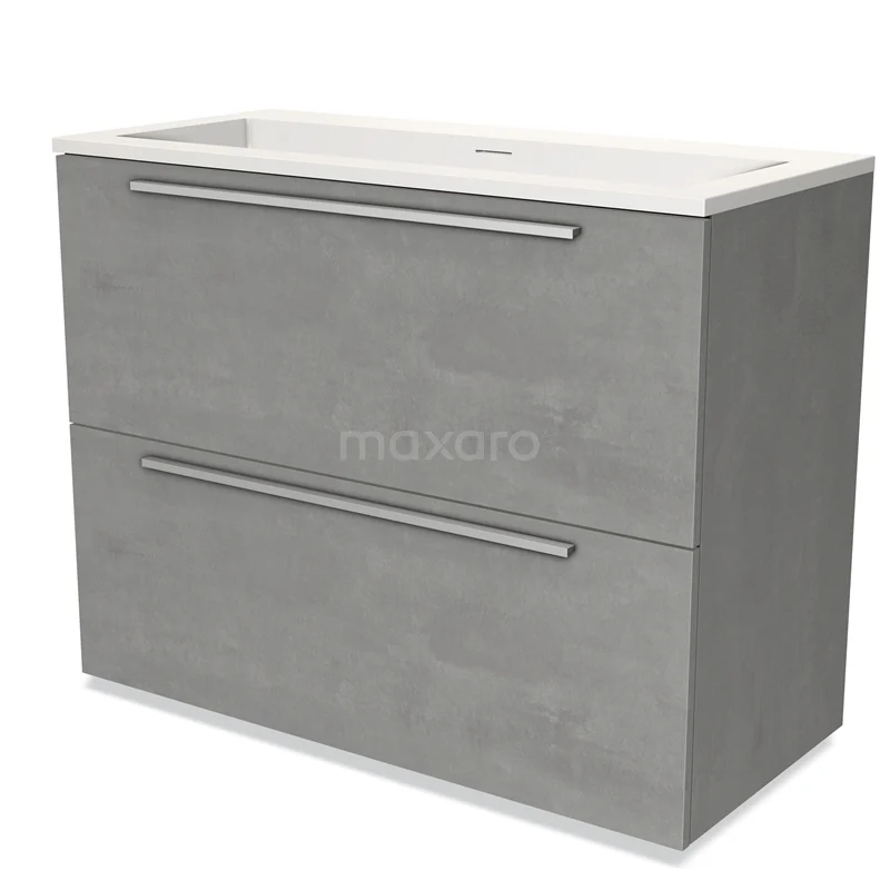 Modulo Bathroom furniture with sink | 100 cm Light grey concrete Flat front Solid surface 2 stacked drawers under each other