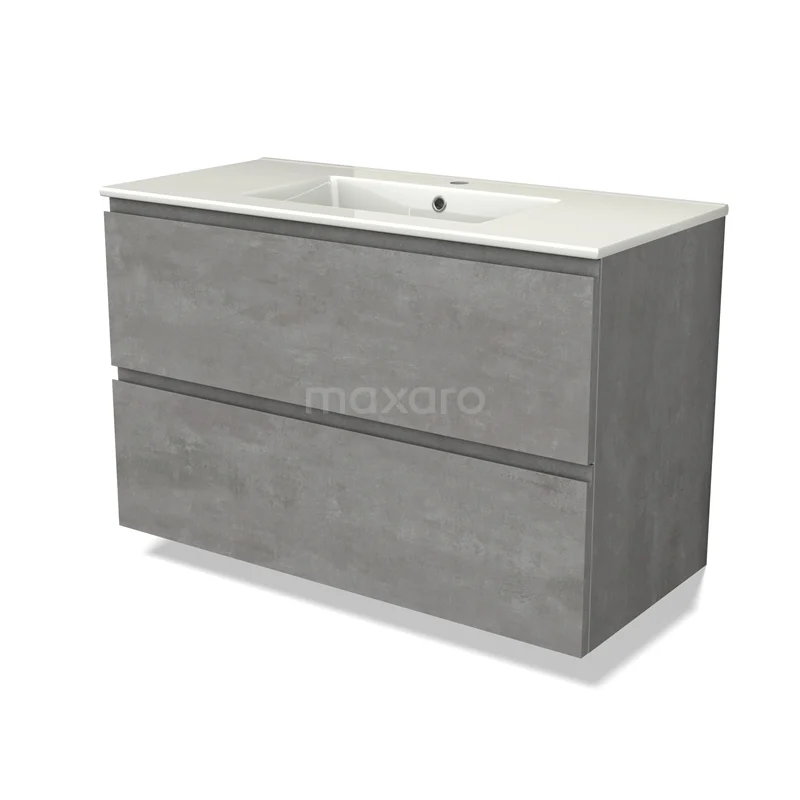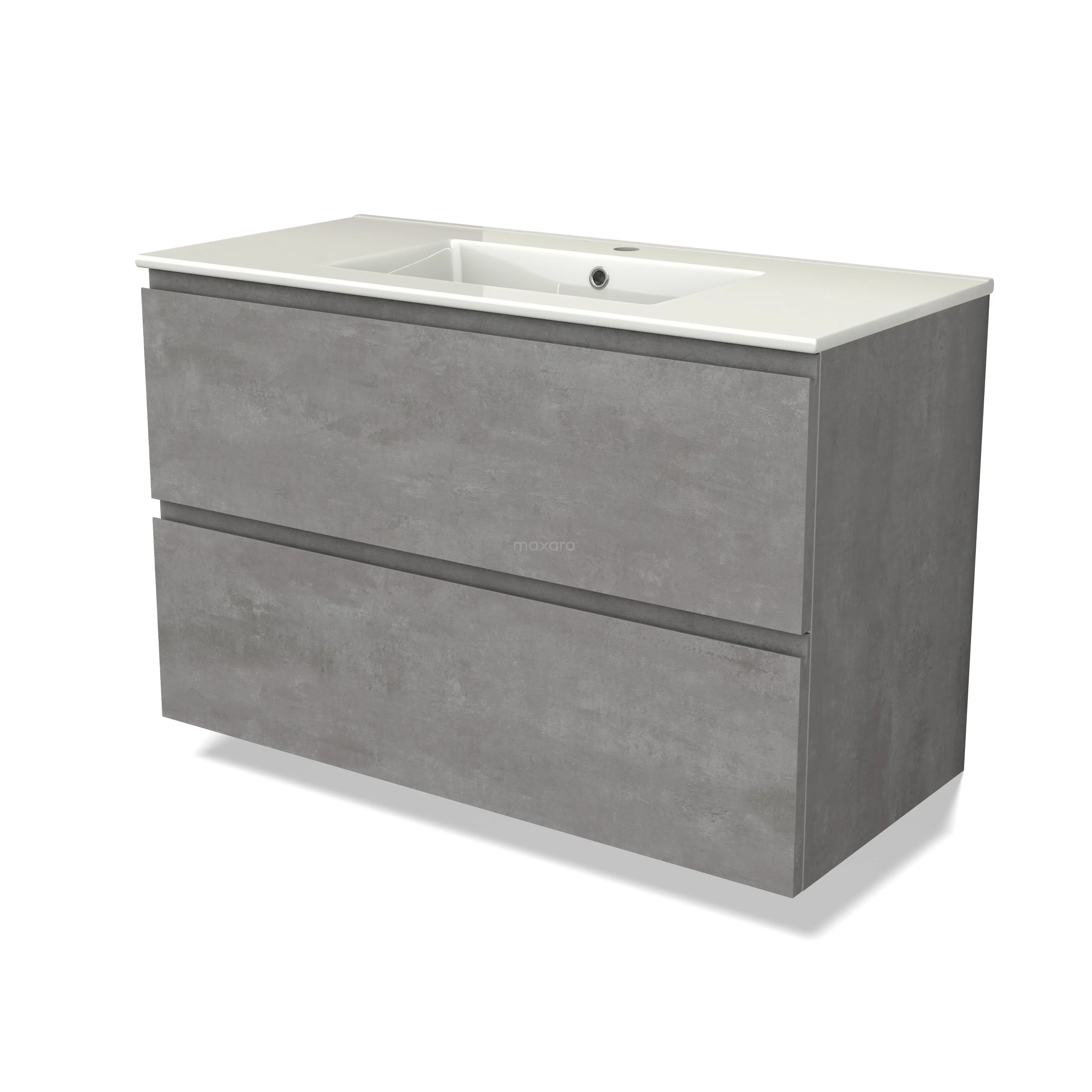 Modulo Bathroom furniture with sink | 100 cm Light grey concrete Handle-less front Ceramic 2 Stacked drawers