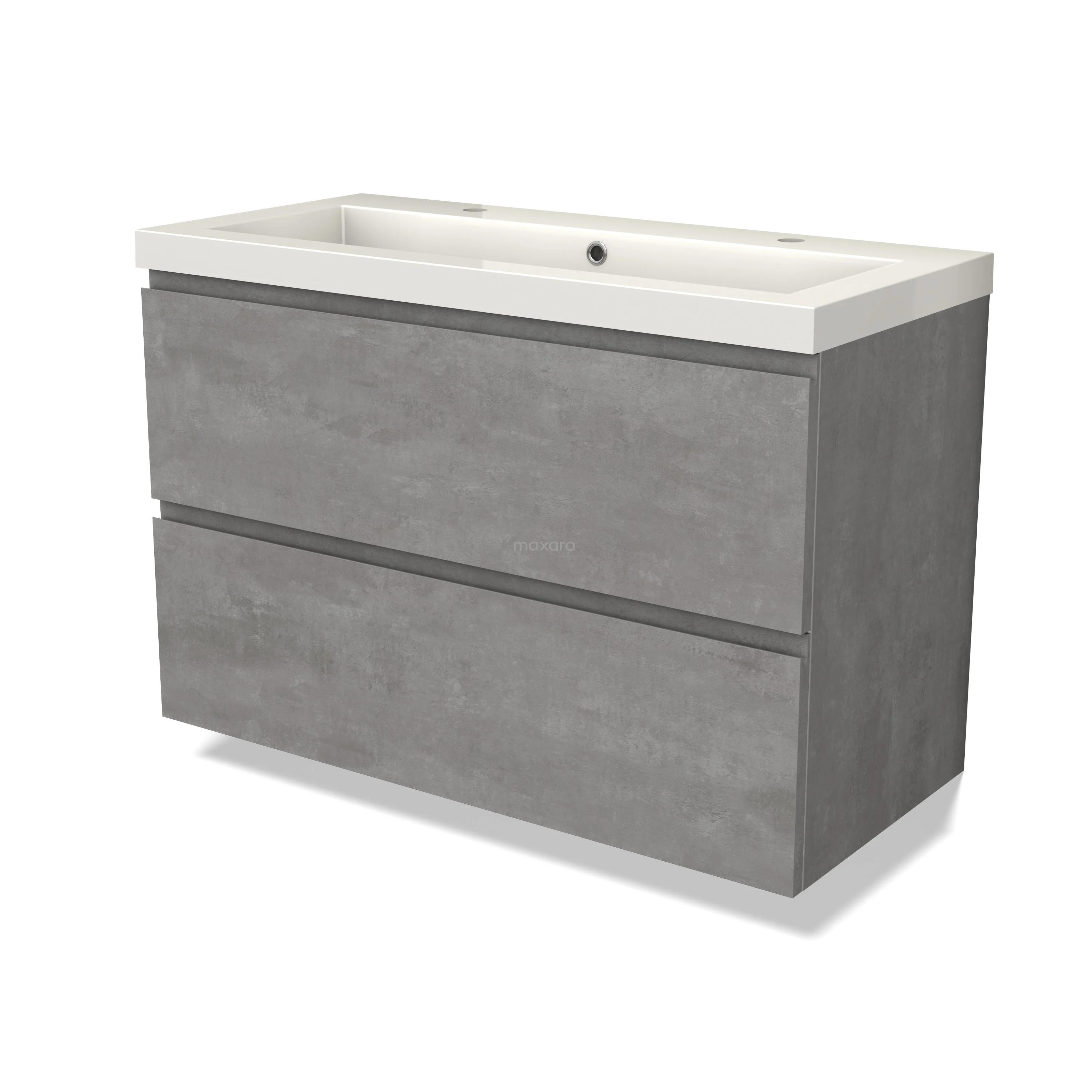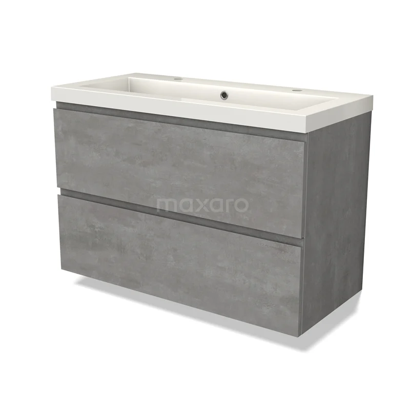 Modulo Bathroom furniture with sink | 100 cm Light grey concrete Handle-less front Mineral marble 2 Stacked drawers