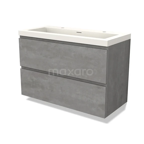 Modulo Bathroom furniture with sink | 100 cm Light grey concrete Handle-less front Solid surface 2 Stacked drawers