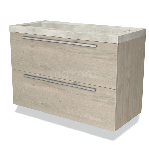 Modulo Bathroom furniture with sink | 100 cm Light grey oak Flat front Concrete 2 Stacked drawers
