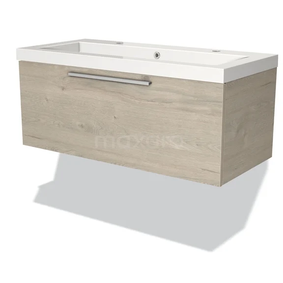 Modulo Bathroom furniture with sink | 100 cm Light grey oak Flat front Mineral marble 1 drawer