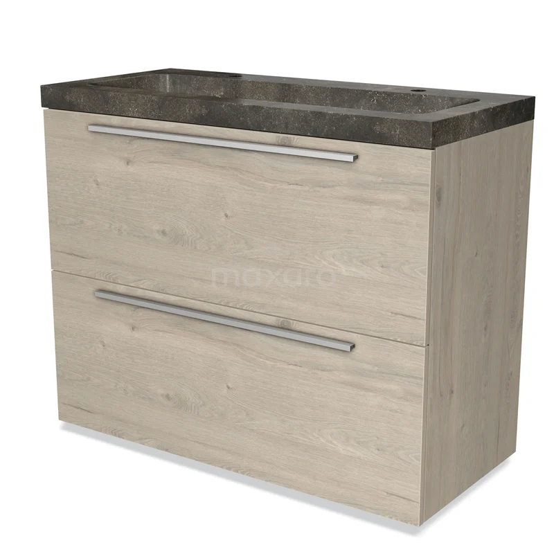 Modulo Bathroom furniture with sink | 100 cm Light grey oak Flat front Natural stone 2 stacked drawers under each other