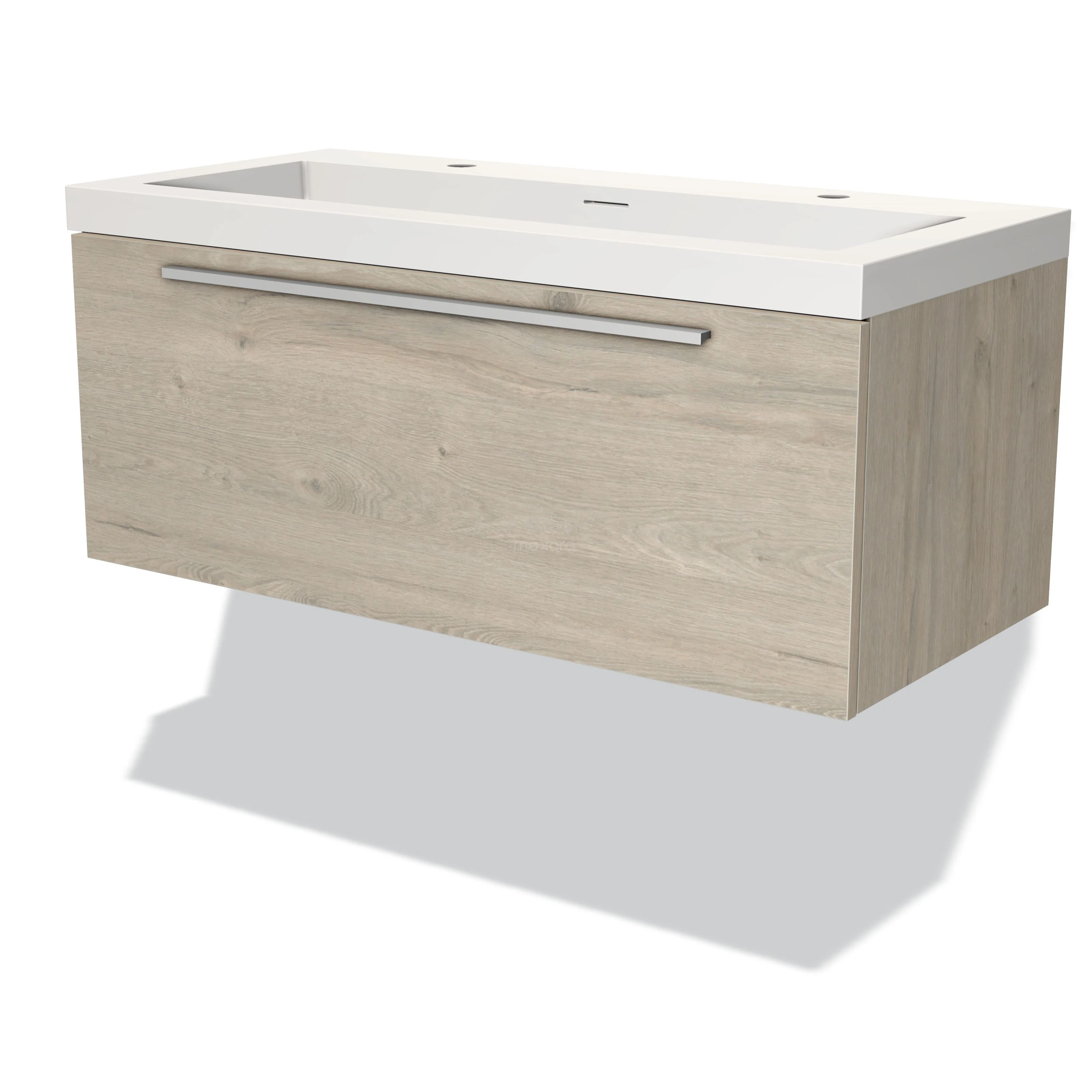 Modulo Bathroom furniture with sink | 100 cm Light grey oak Flat front Solid surface 1 drawer