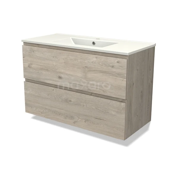 Modulo Bathroom furniture with sink | 100 cm Light grey oak Handle-less front Ceramic 2 Stacked drawers