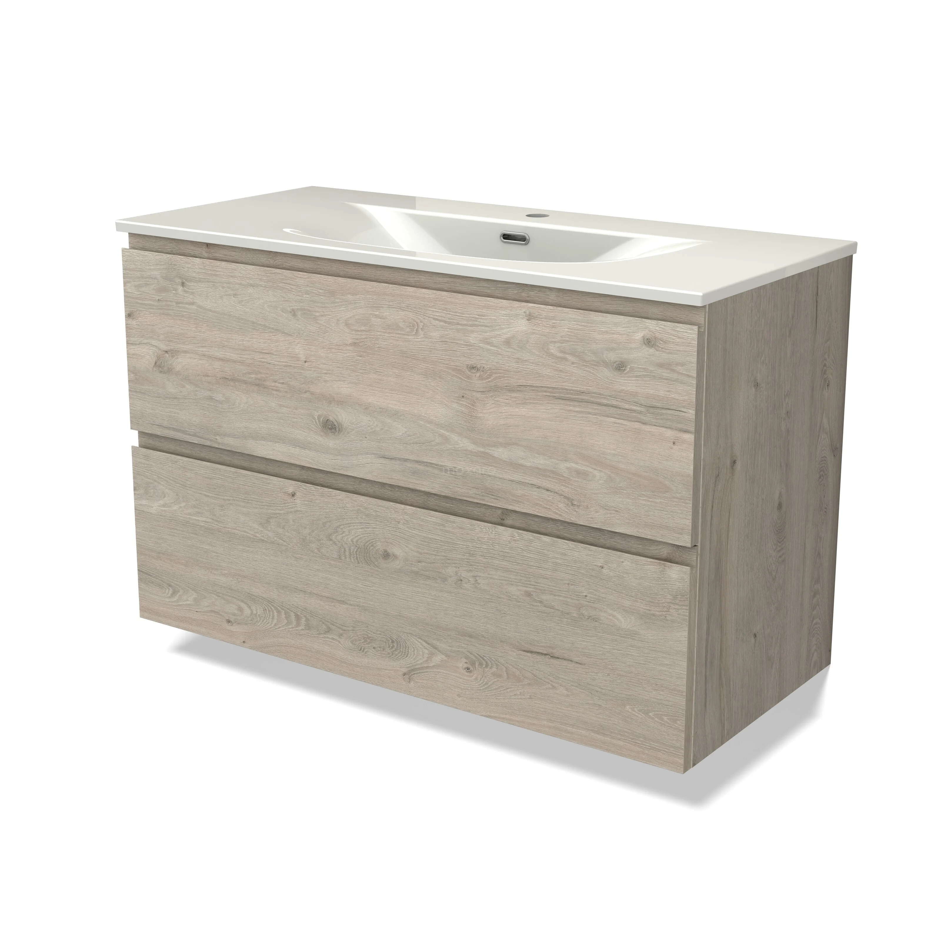 Modulo Bathroom furniture with sink | 100 cm Light grey oak Handle-less front Ceramic 2 Stacked drawers