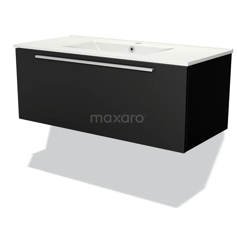 Modulo Bathroom furniture with sink | 100 cm Matte black Flat front Ceramic 1 drawer
