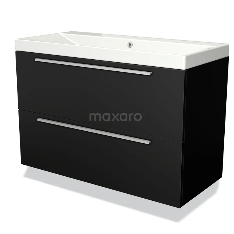 Modulo Bathroom furniture with sink | 100 cm Matte black Flat front Ceramic 2 Stacked drawers