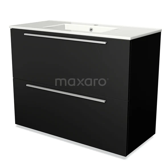 Modulo Bathroom furniture with sink | 100 cm Matte black Flat front Ceramic 2 stacked drawers under each other