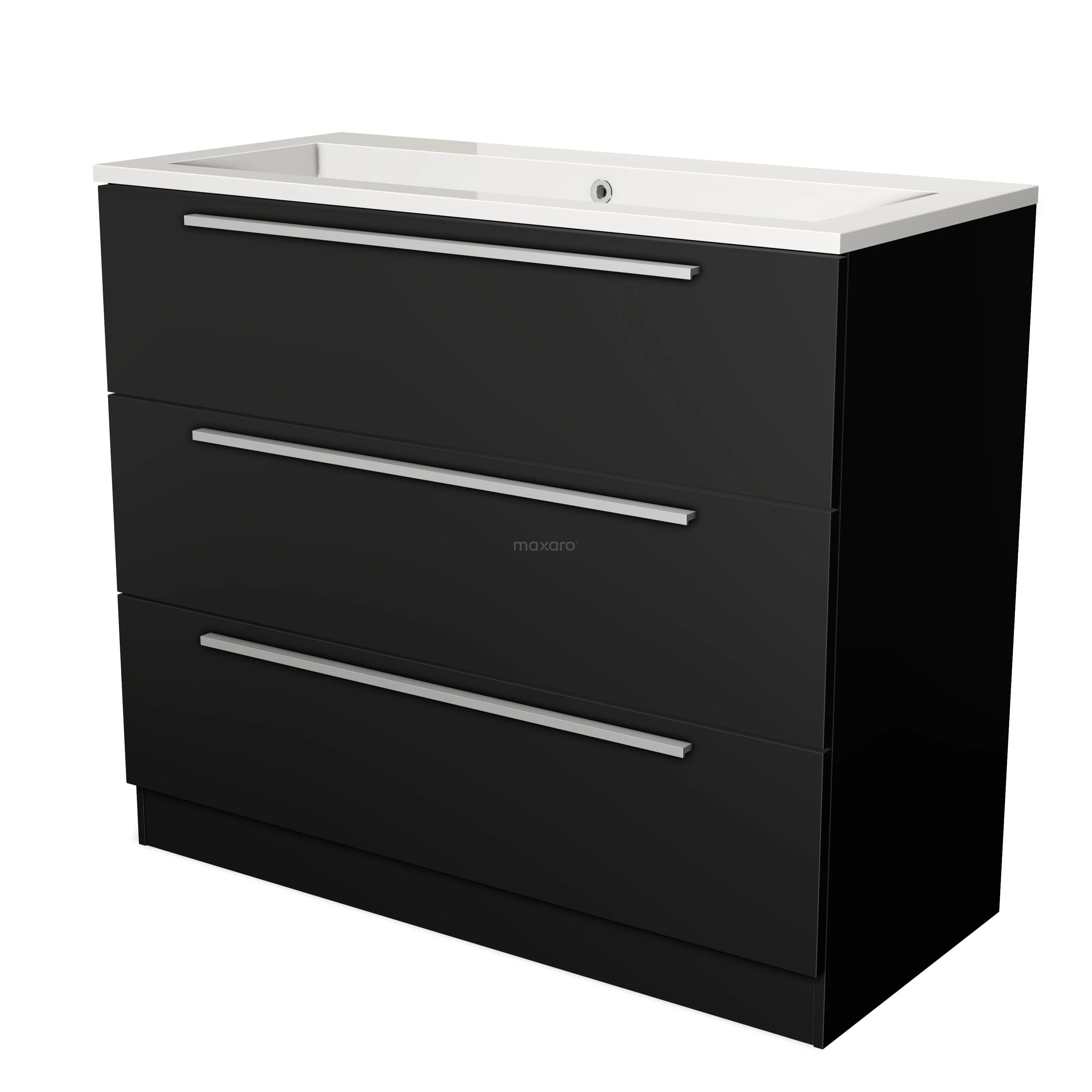 Modulo Bathroom furniture with sink | 100 cm Matte black Flat front Mineral marble 3 standing drawers