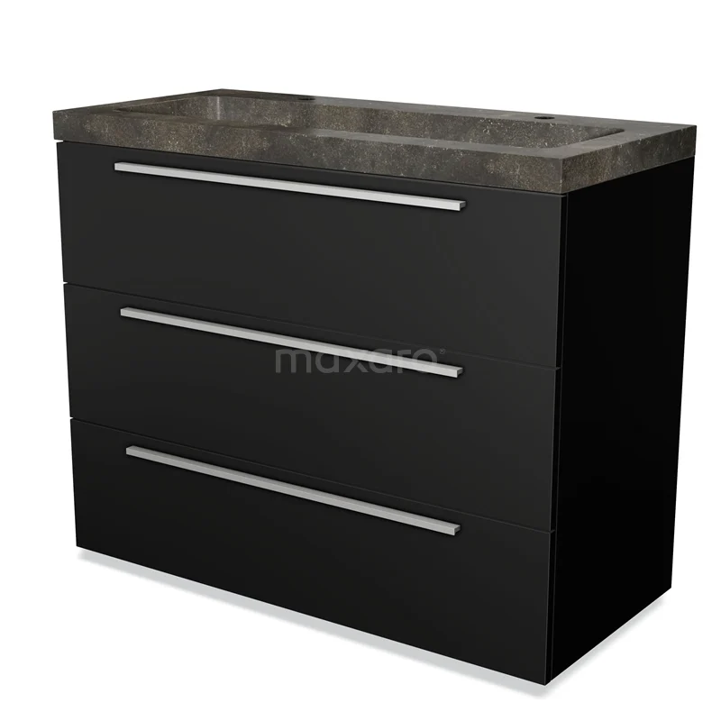 Modulo Bathroom furniture with sink | 100 cm Matte black Flat front Natural stone 3 drawers