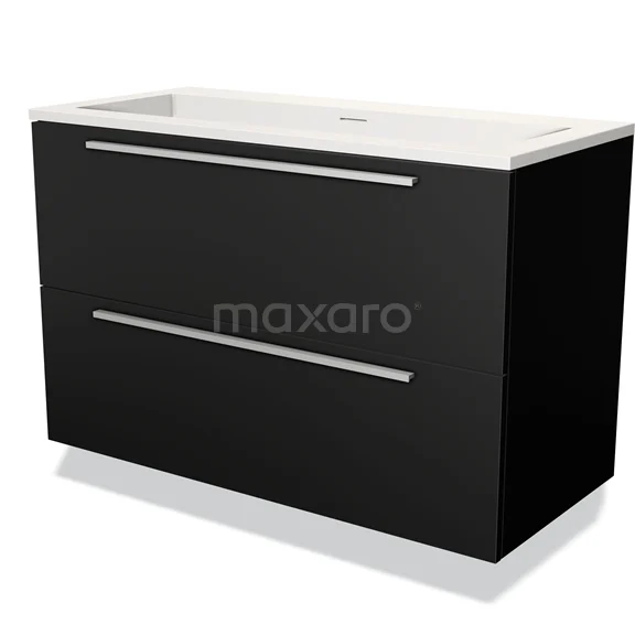 Modulo Bathroom furniture with sink | 100 cm Matte black Flat front Solid surface 2 Stacked drawers