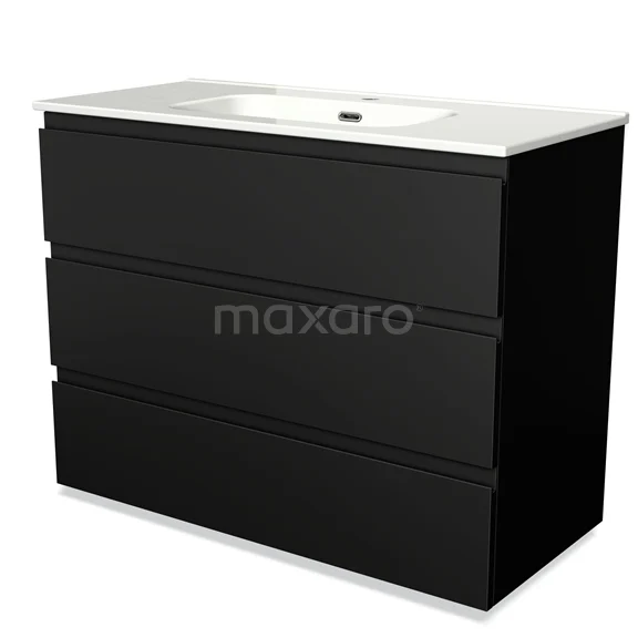 Modulo Bathroom furniture with sink | 100 cm Matte black Handle-less front Ceramic 3 drawers