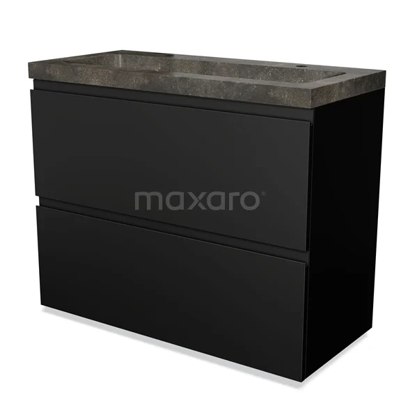 Modulo Bathroom furniture with sink | 100 cm Matte black Handle-less front Natural stone 2 stacked drawers under each other