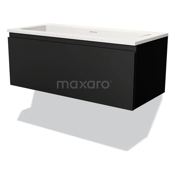 Modulo Bathroom furniture with sink | 100 cm Matte black Handle-less front Solid surface 1 drawer