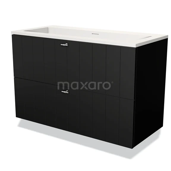 Modulo Bathroom furniture with sink | 100 cm Matte black Slat front Solid surface 2 Stacked drawers