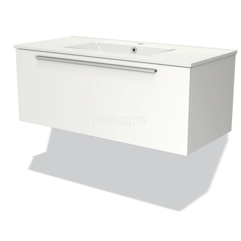 Modulo Bathroom furniture with sink | 100 cm Matte white Flat front Ceramic 1 drawer