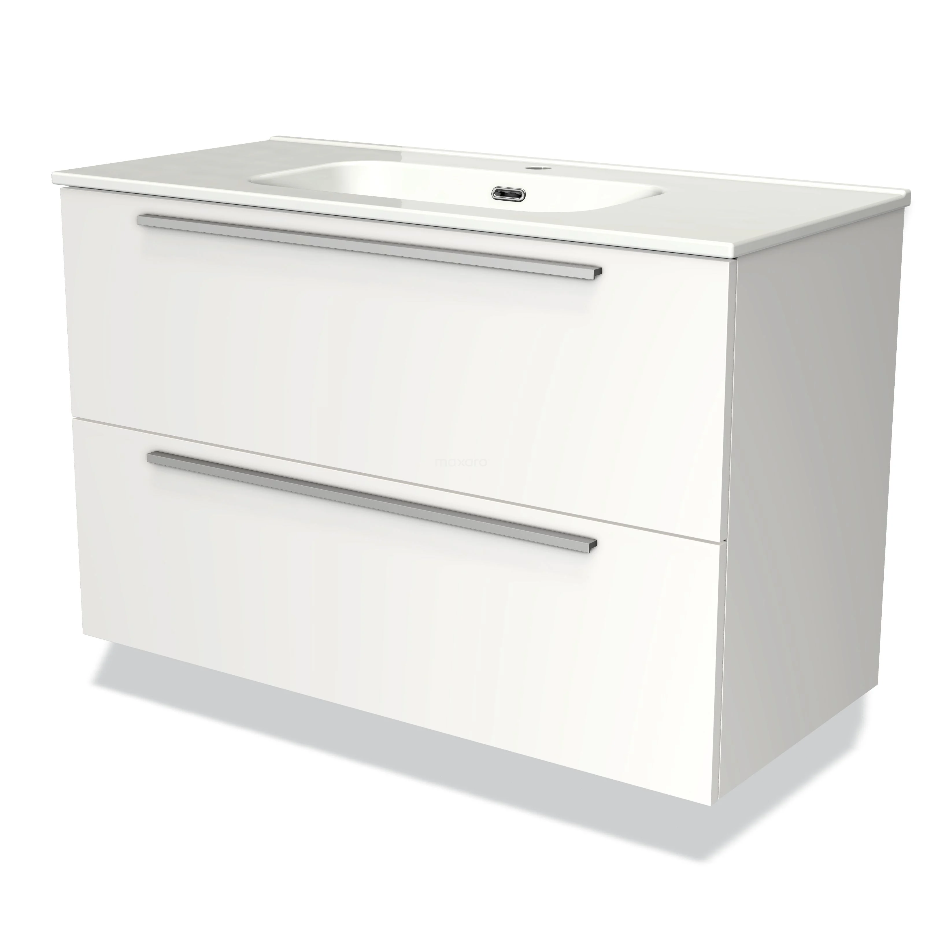 Modulo Bathroom furniture with sink | 100 cm Matte white Flat front Ceramic 2 Stacked drawers
