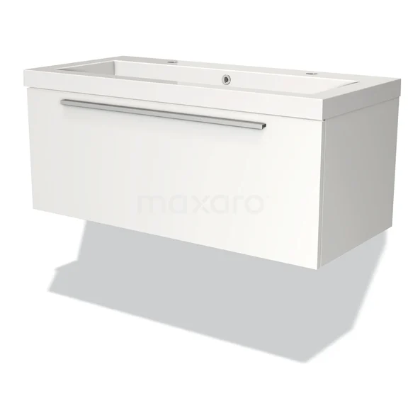 Modulo Bathroom furniture with sink | 100 cm Matte white Flat front Mineral marble 1 drawer