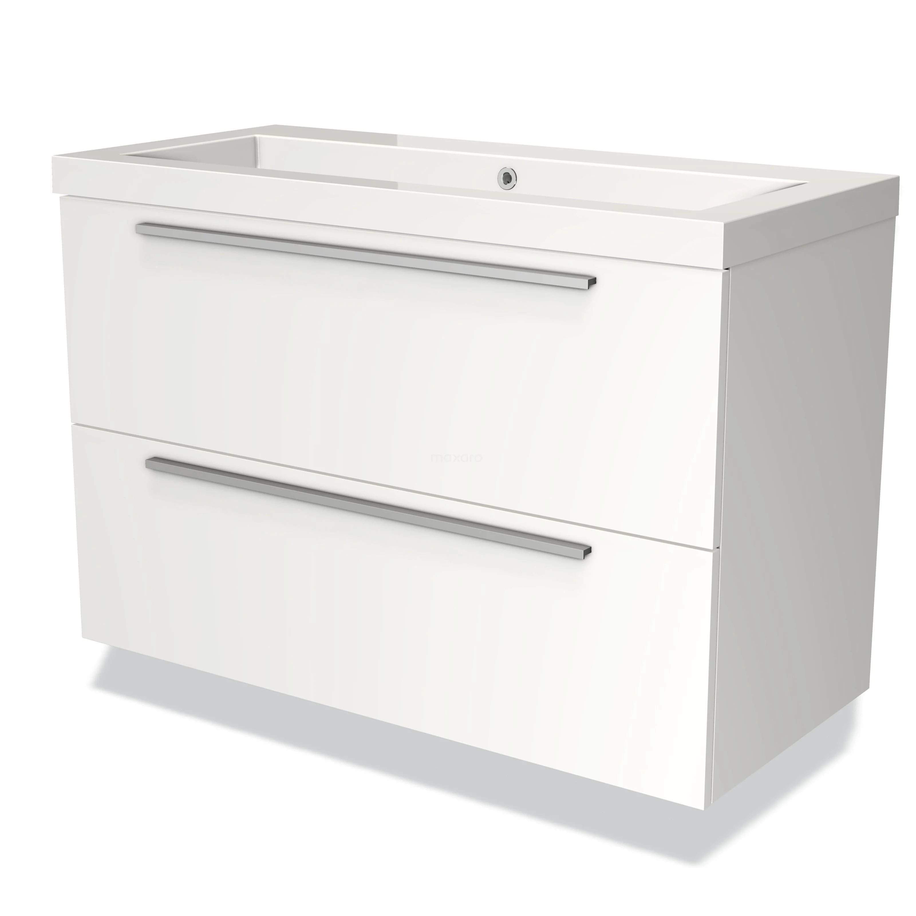 Modulo Bathroom furniture with sink | 100 cm Matte white Flat front Mineral marble 2 Stacked drawers