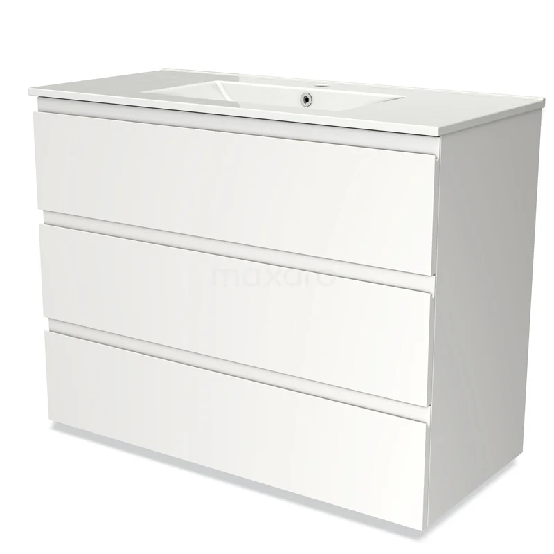 Modulo Bathroom furniture with sink | 100 cm Matte white Handle-less front Ceramic 3 drawers