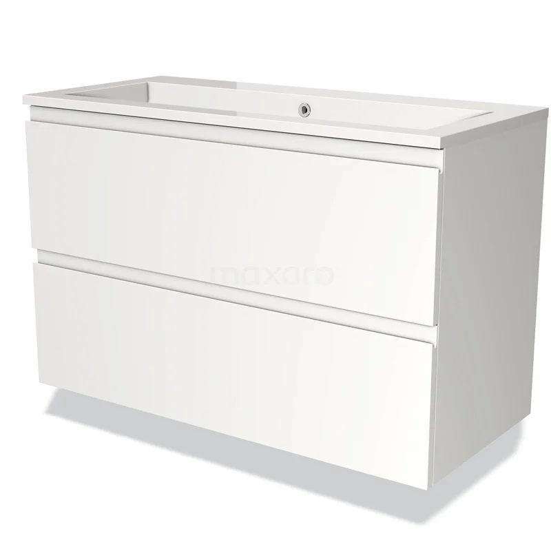 Modulo Bathroom furniture with sink | 100 cm Matte white Handle-less front Mineral marble 2 Stacked drawers