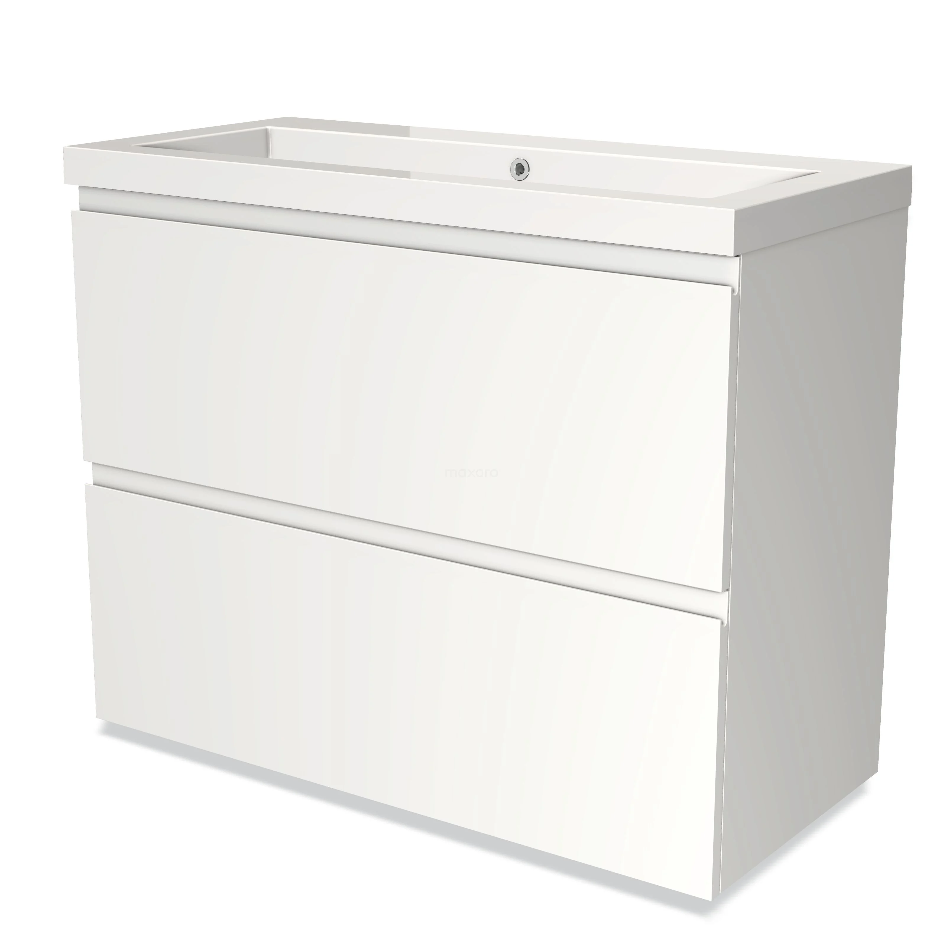 Modulo Bathroom furniture with sink | 100 cm Matte white Handle-less front Mineral marble 2 stacked drawers under each other