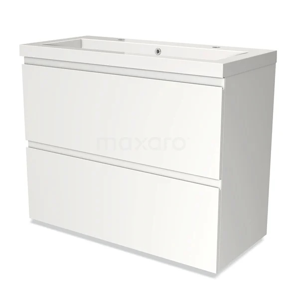 Modulo Bathroom furniture with sink | 100 cm Matte white Handle-less front Mineral marble 2 stacked drawers under each other