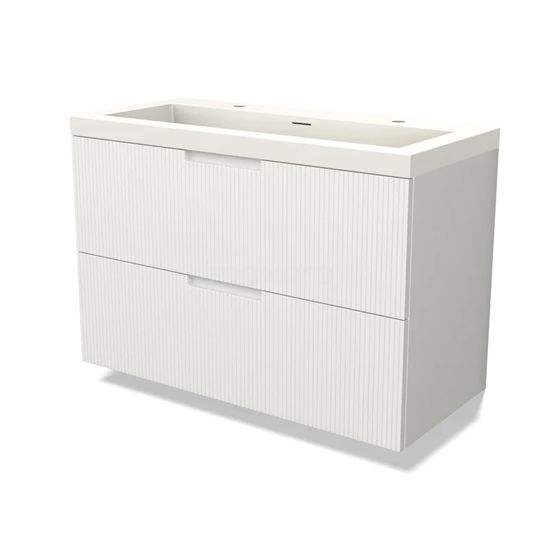 Modulo Bathroom furniture with sink | 100 cm Matte white Line front Solid surface 2 Stacked drawers