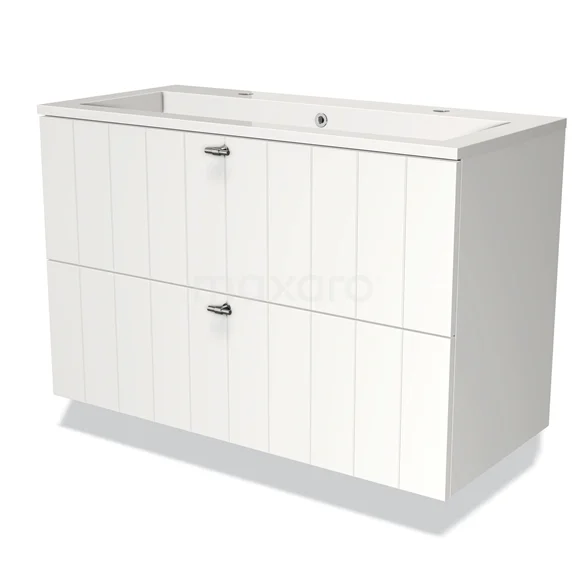 Stylish design The stylish design makes this bathroom unit the eye-catcher of your bathroom. The base cabinet features a slatted front and has a matte white finish. This colour has a modern appeal and gives the unit a fresh look and feel. In addition, the slatted front adds a rural touch. You need to add the handles yourself. These are available in different colours and shapes.