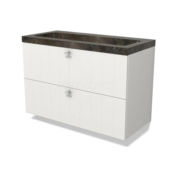 Modulo Bathroom furniture with sink | 100 cm Matte white Slat front Natural stone 2 Stacked drawers
