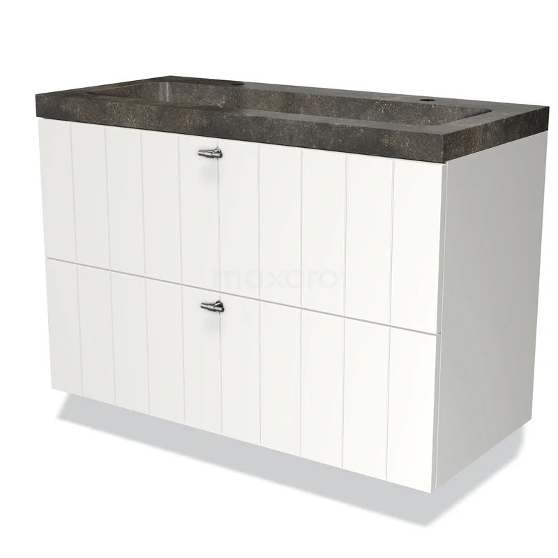 Modulo Bathroom furniture with sink | 100 cm Matte white Slat front Natural stone 2 Stacked drawers
