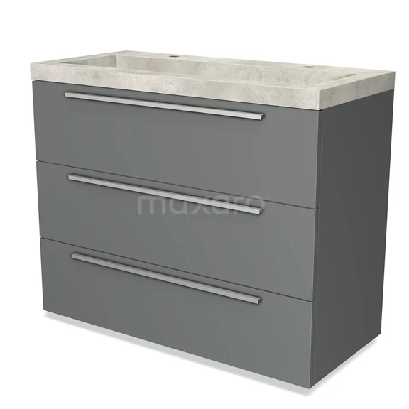 Modulo Bathroom furniture with sink | 100 cm Mid grey Flat front Concrete 3 drawers