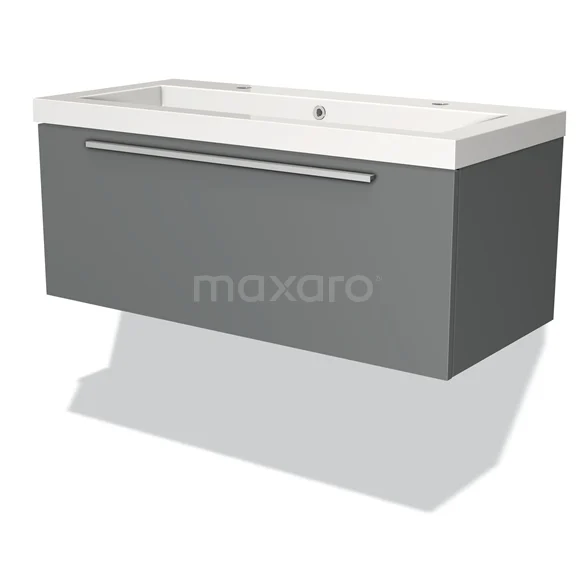 Modulo Bathroom furniture with sink | 100 cm Mid grey Flat front Mineral marble 1 drawer