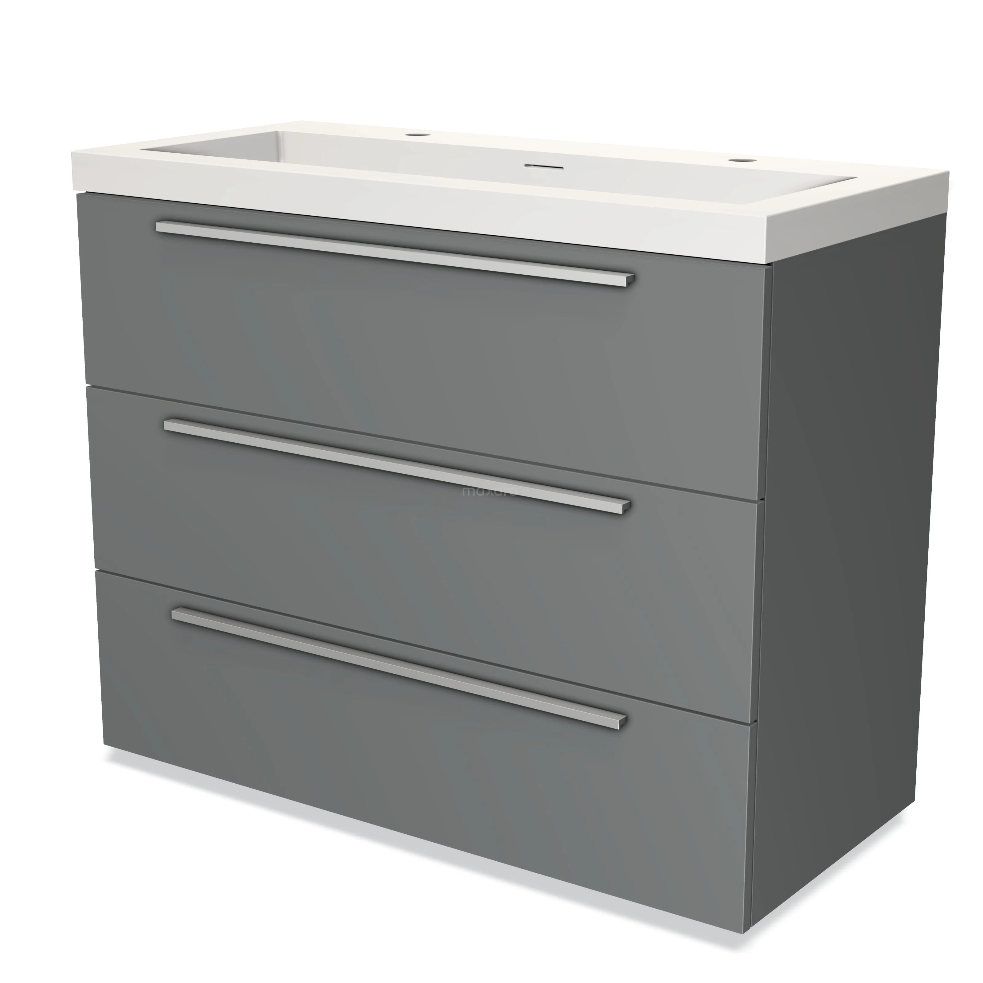 Modulo Bathroom furniture with sink | 100 cm Mid grey Flat front Solid surface 3 drawers