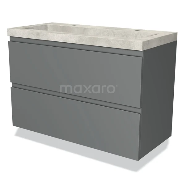 Modulo Bathroom furniture with sink | 100 cm Mid grey Handle-less front Concrete 2 Stacked drawers