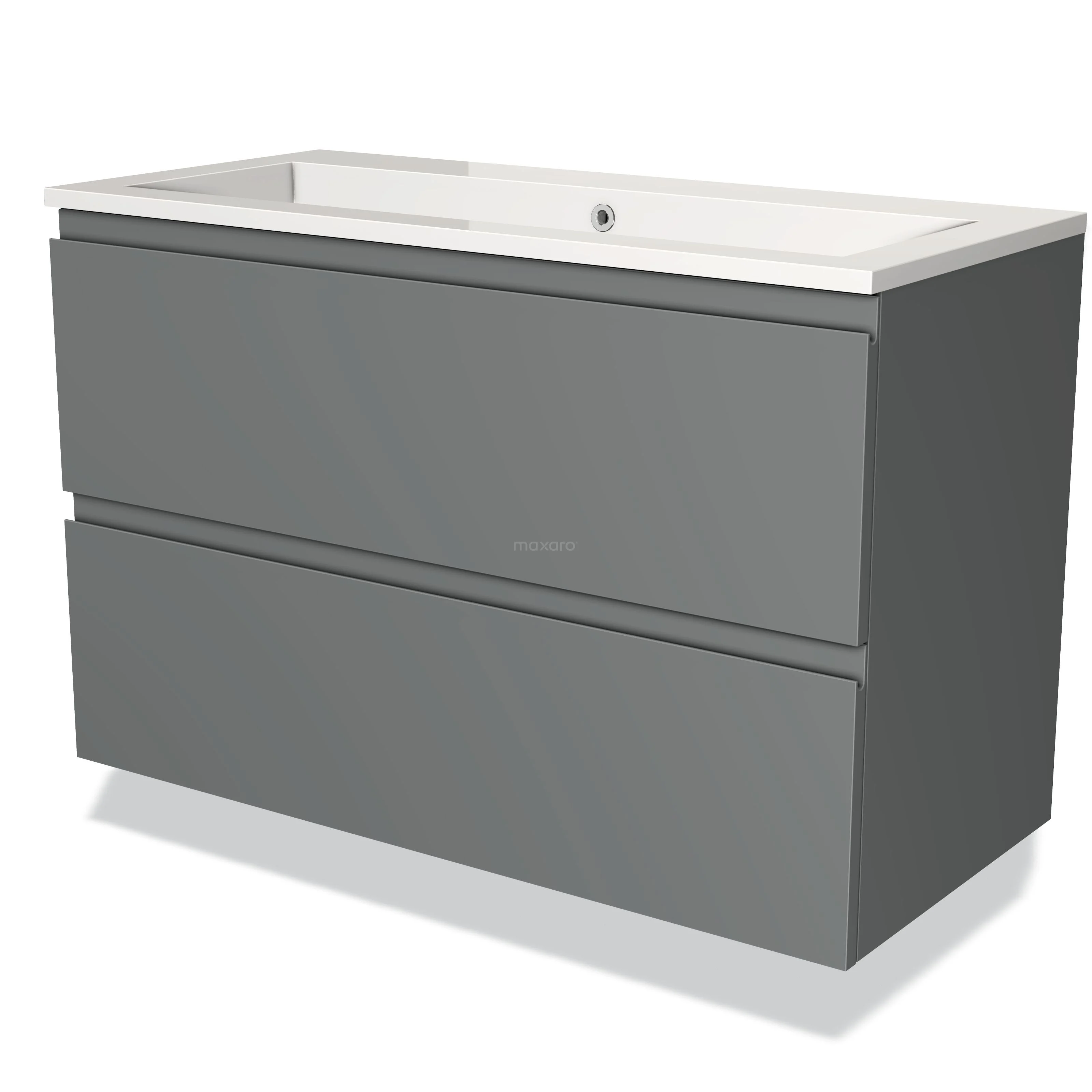 Modulo Bathroom furniture with sink | 100 cm Mid grey Handle-less front Mineral marble 2 Stacked drawers