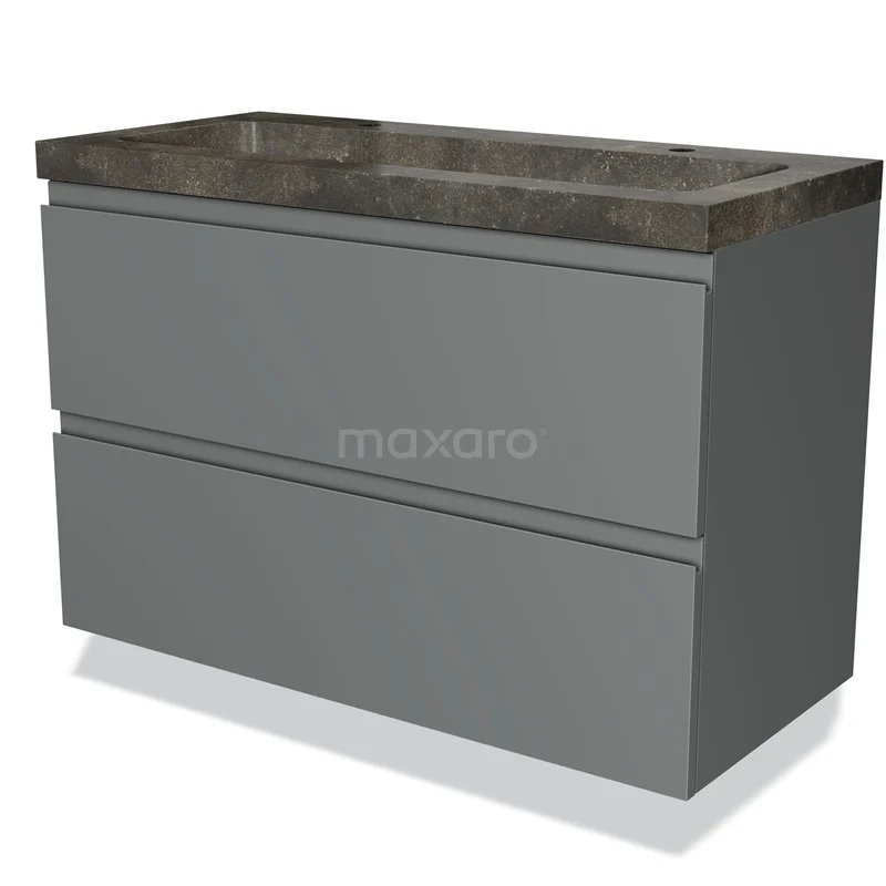 Modulo Bathroom furniture with sink | 100 cm Mid grey Handle-less front Natural stone 2 Stacked drawers