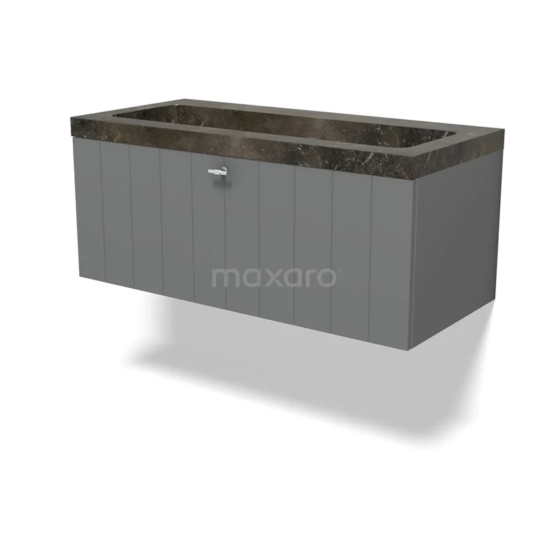 Modulo Bathroom furniture with sink | 100 cm Mid grey Slat front Natural stone 1 drawer