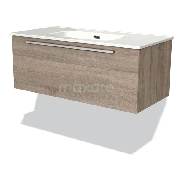 Modulo Bathroom furniture with sink | 100 cm Oak Flat front Ceramic 1 drawer